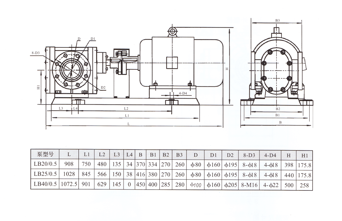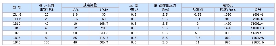 LB型冷凍機用齒輪泵性能參 數及配套電機表: