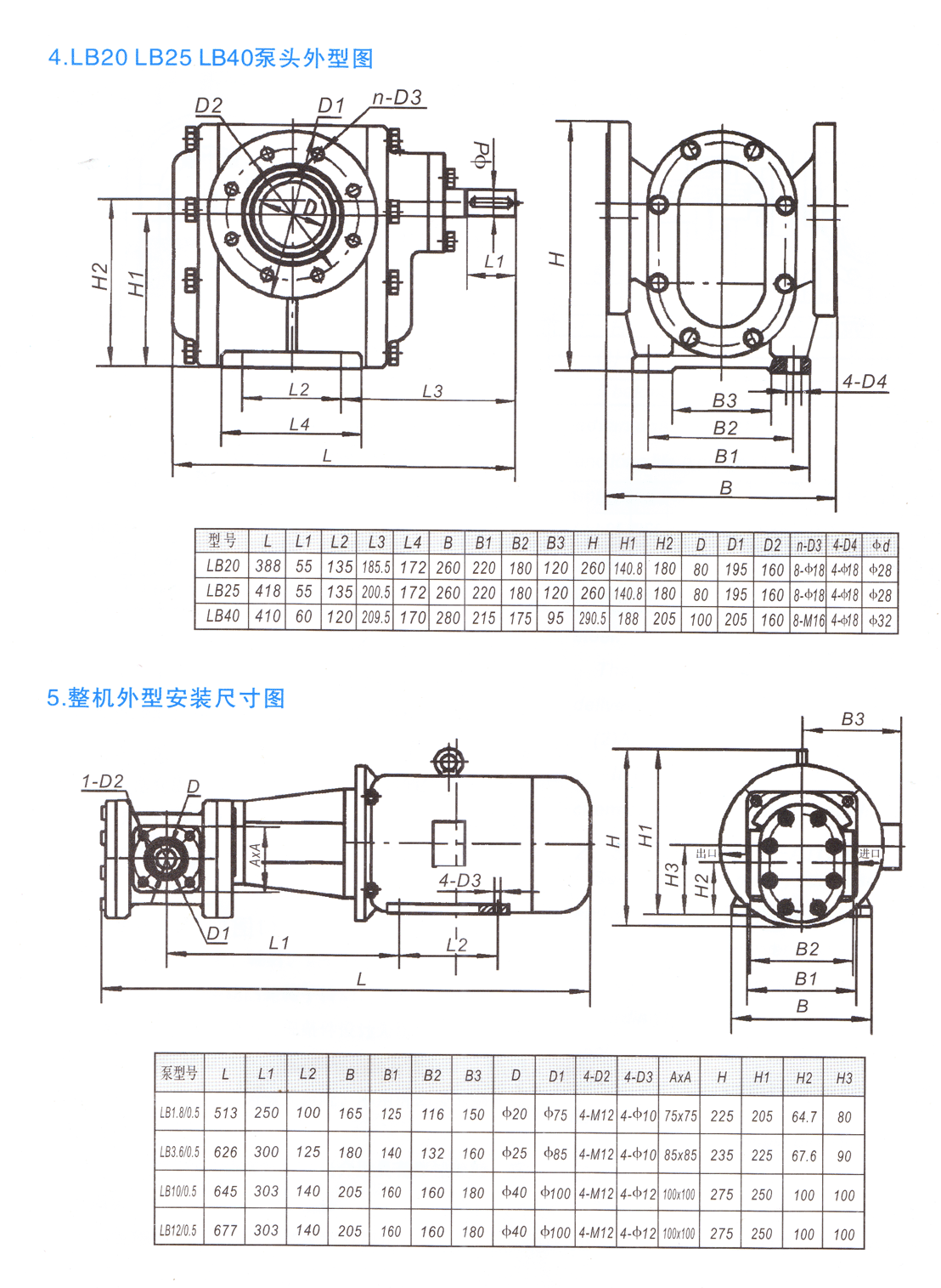 LB型冷凍機用齒輪泵外形及 安裝尺寸: